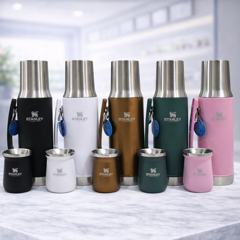 Combo ideal para el día a día. Termo térmico y mate a juego en acero inoxidable que mantiene la temperatura por más tiempo. Incluye pico cebador con tecnología System para servir de forma precisa y sin derrames. (Réplica premium)